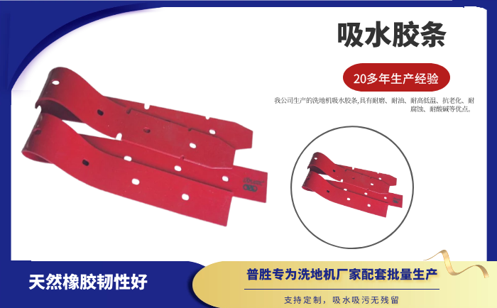 產(chǎn)品說明:吸水膠條是洗地機(jī)吸水扒上的重要部件,作用就是與地面接觸,產(chǎn)生一個(gè)密封的空間,把地面上的污水通過風(fēng)機(jī)進(jìn)行回收。吸水膠條一般分為耐油型(進(jìn)口PU原料)和普通型(進(jìn)口NR原料)兩種。